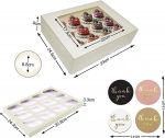 • CUPCAKE BOX SET | We know space in your kitchen can be at a premium, that’s why our cupcake containers set of boxes and inserts fold flat for easy storage. Our white & Brown cupcake box set Include 10pcs cupcake boxes with 12 inserts for safe delivery of cupcakes or muffins. The cupcake containers measure 34cm x 26cm x 9cm (LxWxH) which is enough space for 12 cupcakes. This premium box with transparent plastic viewing window is perfect for gifts of muffins or cupcakes.